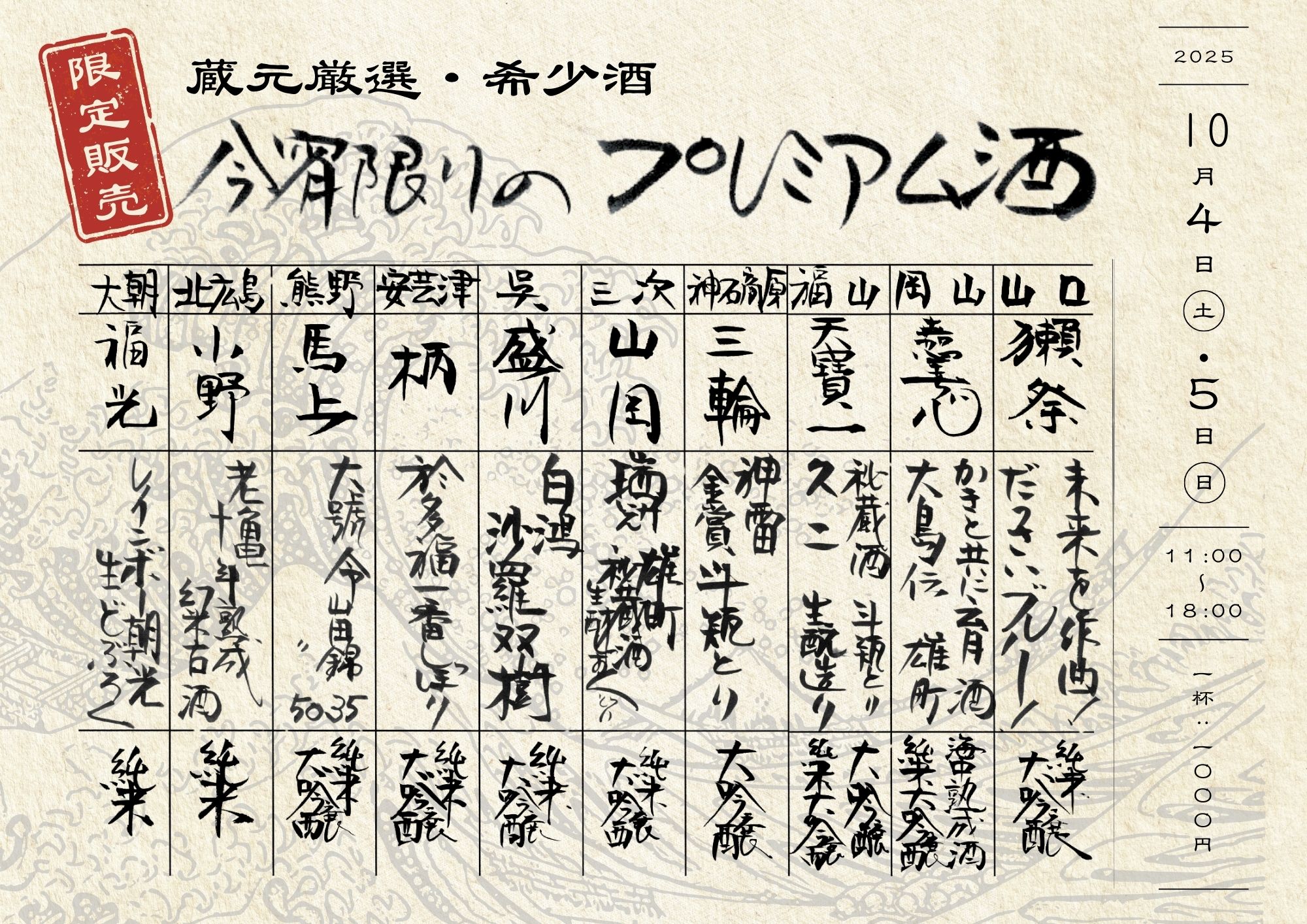 希少酒販売ブース提供予定の銘柄はこちら