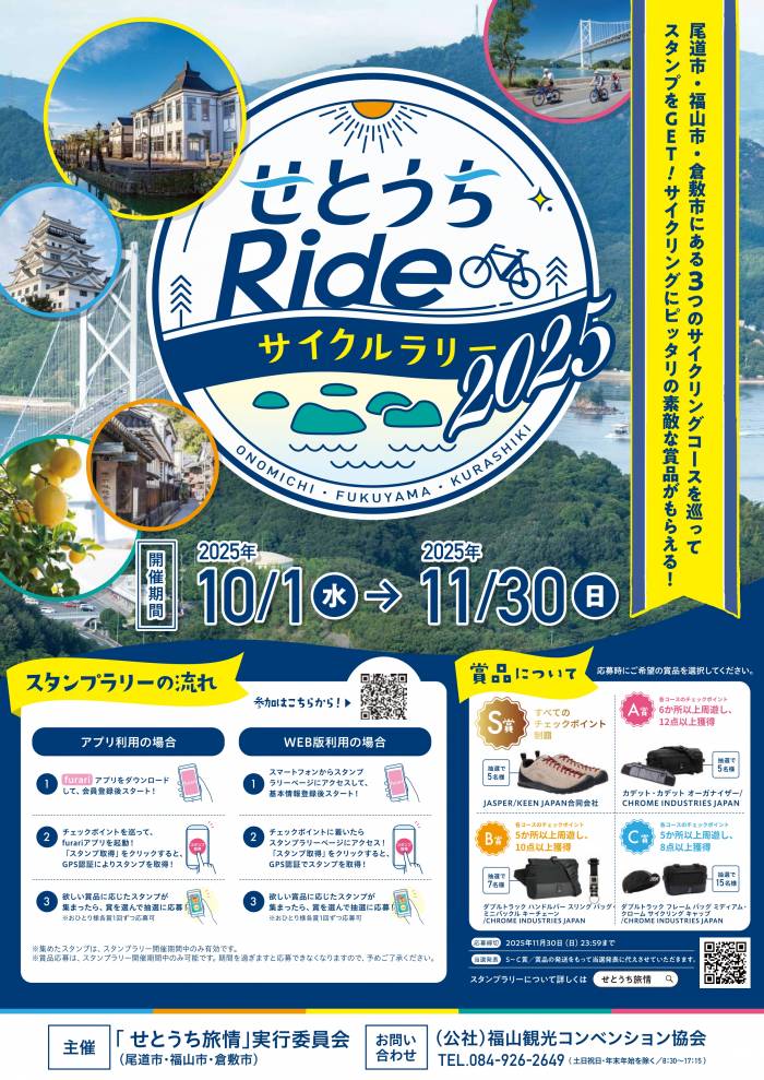 広島県福山市・尾道市及び岡山県倉敷市の3市が所有するサイクリングコースを活用したサイクルラリー「せとうちRideサイクルラリー2025」が開催中です!