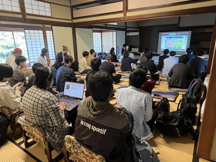 会場については、福山城関連施設である福寿会館の活用をご提案いただき、施設の下見を経て、普段とは異なる雰囲気の中で開催したいと考え決定しました。和風庭園を望みながら議論することができ、通常の会議室とは違う空間が、参加者同士の交流や創造的な議論をより活発にしてくれたと感じています。特に、本ワークショップのような理系学会では、考えが行き詰まったときにホッと一息つくことができました。