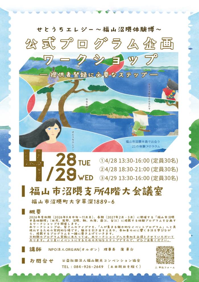 せとうちエレジー~福山沼隈体験博~ 公式プログラム企画ワークショップ―提供者登録に必要なステップ― 開催のお知らせ